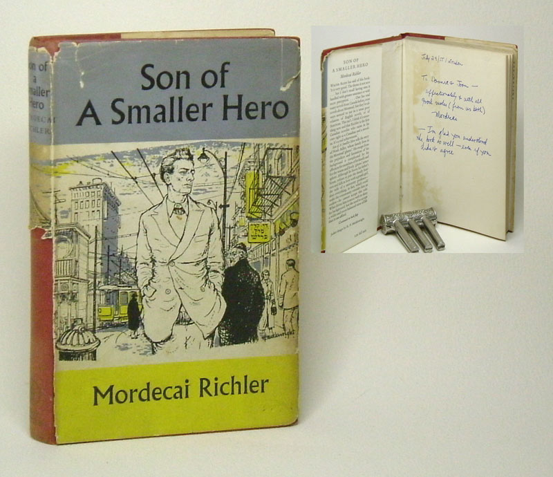 with affection & many fond memories, Adele Wiseman". 8vo. 346 pp. A fine copy in black cloth, silver titles, red topstain in a near fine pictorial dustwrapper showing some minimal use, the rare publisher's promotional wraparound band present, containing laudatory reviews by Saul Bellow, Irving Howe and David Daiches. A truly lovely copy.