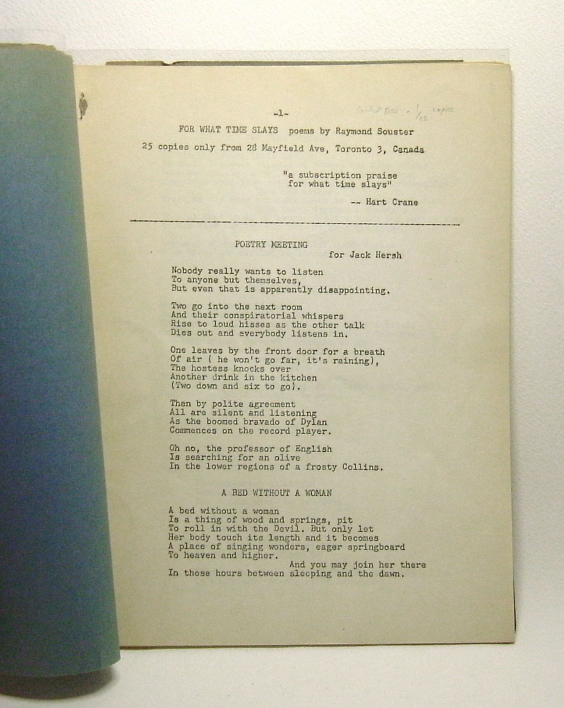 pp. 1 of 250 copies. "Ryerson Poetry Chap-Book."